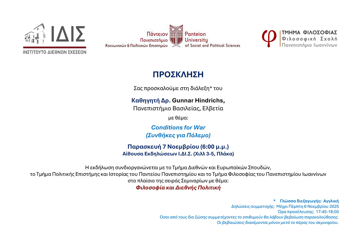 ΙΔΙΣ (Ινστιτούτο Διεθνών Σχέσεων) Φιλοσοφία και Διεθνής Πολιτική – Κύκλος σεμιναρίων