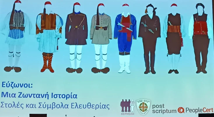 Τη Δευτέρα 10 Νοεμβρίου, στο κατάμεστο αμφιθέατρο του Πολεμικού Μουσείου Αθηνών, η ΦΕΡΜΕΛΗ παρουσίασε το διαδραστικό έκθεμα «Εύζωνοι: Μια ζωντανή ιστορία – Στολές και σύμβολα ελευθερίας», μια πρωτοβουλία που παντρεύει την παράδοση με την καινοτομία. Με τη συμβολή των εταιρειών PostScriptum και PeopleCert, η ιστορία των Ευζώνων «ζωντανεύει» μέσα από μια ψηφιακή οθόνη, δίνοντας τη δυνατότητα στους επισκέπτες να θαυμάσουν, μέσω της περιήγησης, τις στολές, τα σύμβολα και τα πρόσωπα ενός σώματος που κουβαλά στις πτυχές του χρόνου και τις αξίες του ελληνισμού.