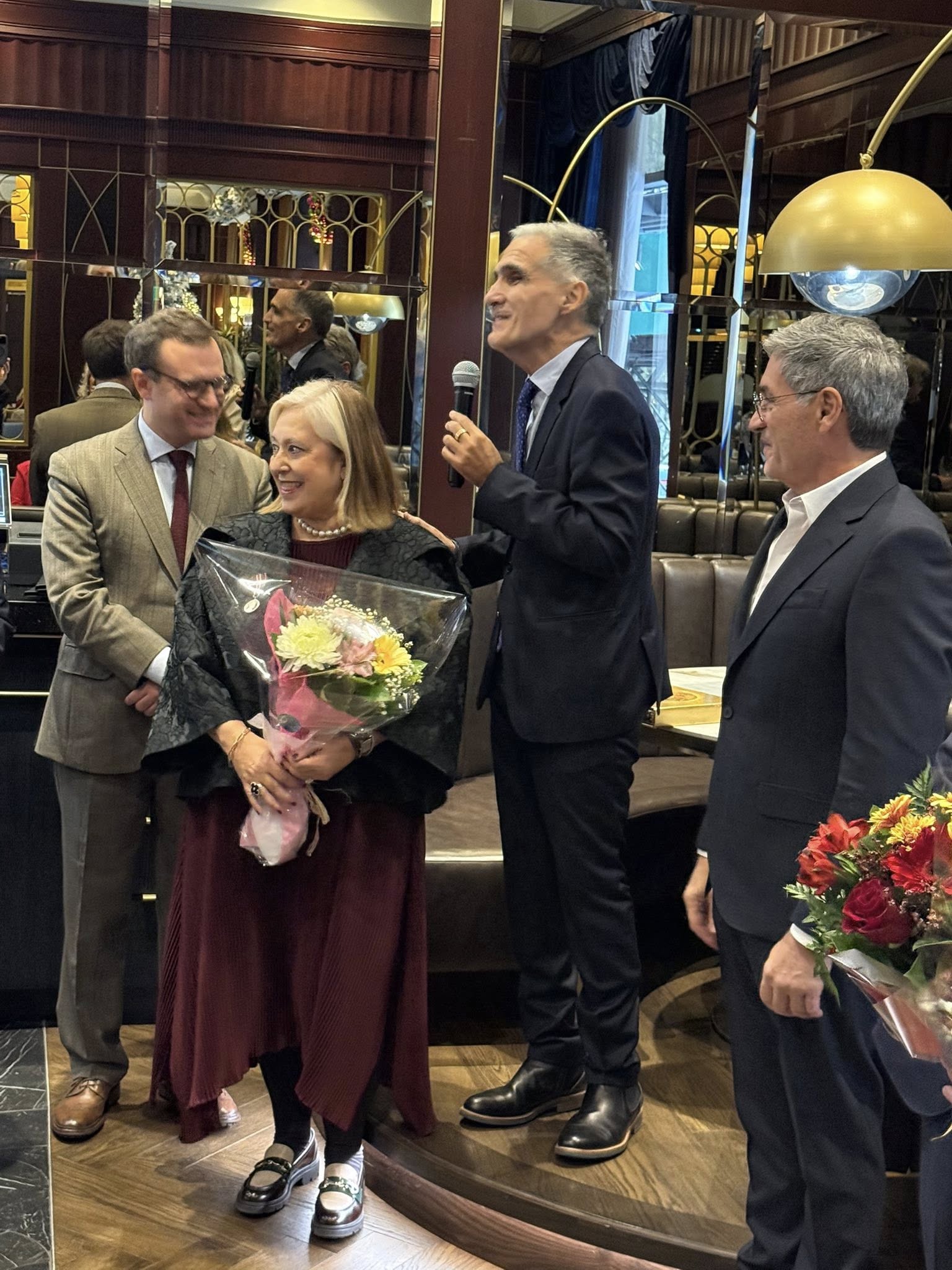 Με βαθιά συγκίνηση, η κα. Φραγκούλη-Αργύρη παρέλαβε μια ανθοδέσμη, ως συμβολική έκφραση ευγνωμοσύνης εκ μέρους της ελληνικής και διεθνούς κοινότητας.