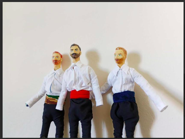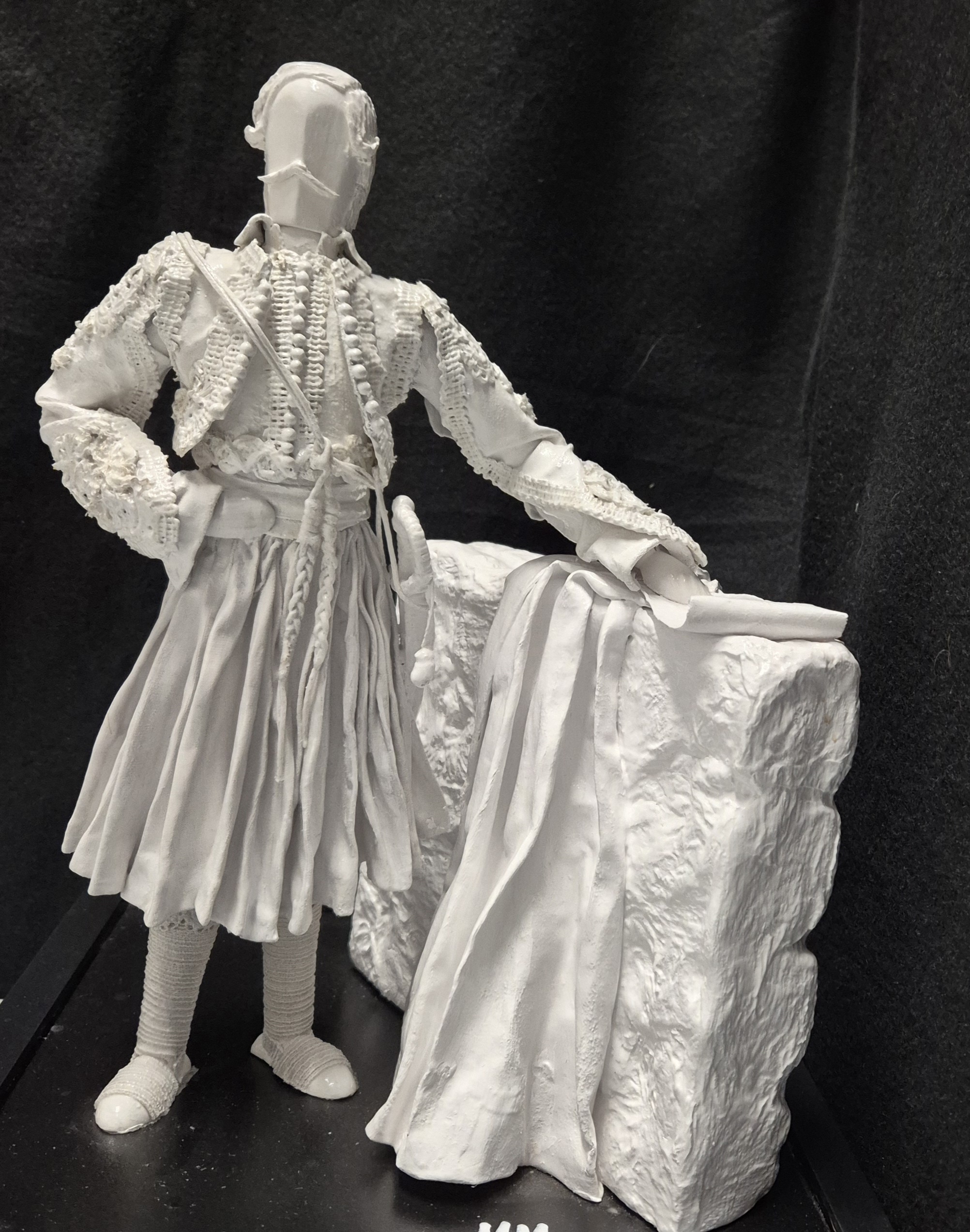 «Ο Βασίλης Κιλιτσλής, ο Τάσος Λιακόπουλος, ο Μηνάς Μαυρικάκης και ο Μάνος Μπατζόλης, εικαστικοί που ως κοινό γνώρισμά τους έχουν την οπτική και απτική απόδοση «ηρώων» και την ευφάνταστη αφήγηση επεισοδίων της νεότερης ελληνικής ιστορίας και παράδοσης, «κεντώντας» τα έργα τους με στοιχεία άλλοτε λόγια και άλλοτε λαϊκότροπα, περιπλανώμενοι και οι τέσσερις με πάθος σε υπαίθριες αγορές, μύστες χαλκέντεροι της τέχνης του συλλέγειν, γνωρίζουν πώς να πλάθουν, να κεντούν, να ζωγραφίζουν, πώς να τιθασεύουν και να επαναχρησιμοποιούν τα ετερόκλητα ready–mades που διασώζουν στις εξακολουθητικές αναζητήσεις τους και πώς να τρέπουν το εφήμερο σε διηνεκές, το ευτελές σε εξαίσιο. Ενθέτοντας στα έργα τους -με τρόπους ο καθένας διαφορετικούς και ευφρόσυνα αναγνωρίσιμους- ψήγματα περασμένων επετείων και μαυρόασπρες φωτογραφίες αγνώστων ή ευχετήριες καρτ-ποστάλ, λαμπιόνια, κουρελάκια, τενεκέδια και χαρτόνια, δάφνες παλιές και σχολικά χάρτινα σημαιάκια, σπαράγματα από φορεσιές, κλωστές, βελόνες, άχυρα, καρφιά και φούντες από τσαρουχάκια, μηχανικά παιχνίδια, μέλη από κούκλες, πορσελάνες κιτς, βελούδινες ή κεντημένες μπάντες και πολύτιμα ενθυμήματα ευζώνων, σχεδιάζουν μια μικρή μα συναρπαστική ενότητα. Μια επινοημένη σχολική γιορτή με vintage άρωμα κι αισθητική, μια θριαμβική παρέλαση οικείων ηρώων μικρής κλίμακας σε αέναη κίνηση.