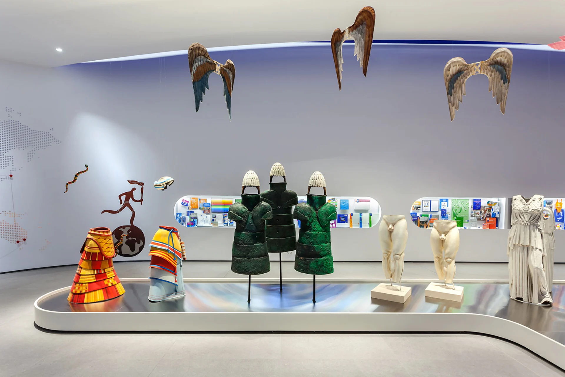 Τρία βραβευμένα εκθέματα ενισχύουν την εμπειρία: η εγκατάσταση «Επίσκεψη στο παρελθόν», ο διαδραστικός χάρτης «Ταξίδι στην Ολυμπία» και το flip book «Ολυμπιακή Χάρτα».