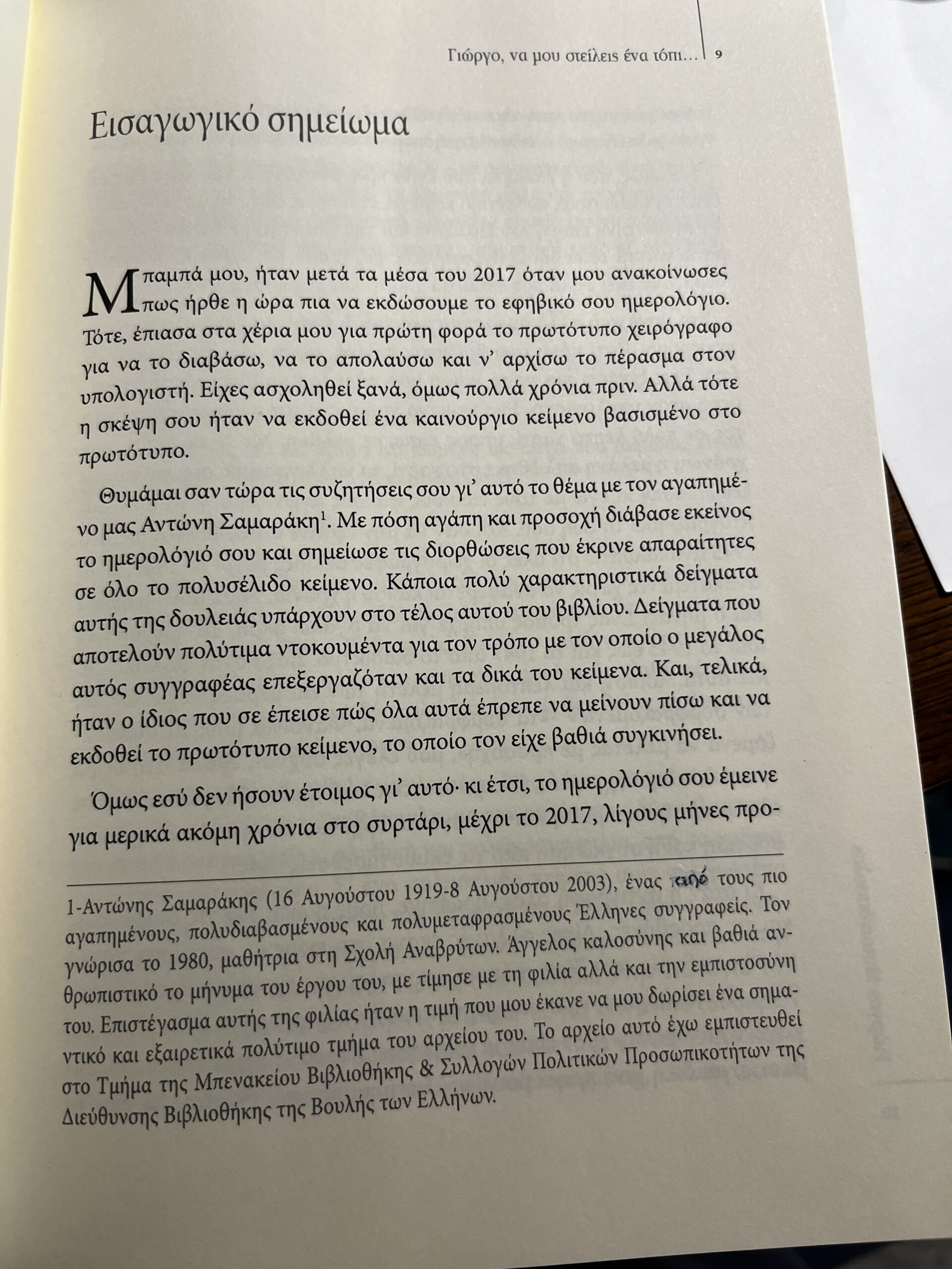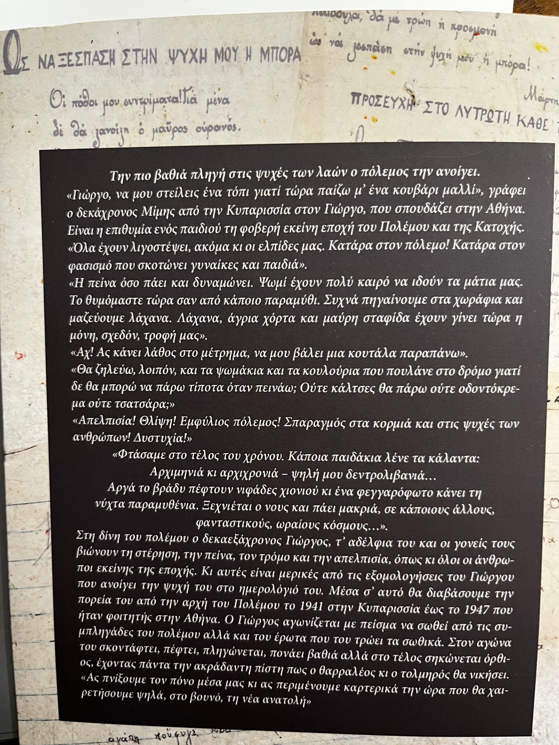 ΥΓ “Γιώργο μου, αν έχεις τίποτα παλιόχαρτα μισογραμμένα… ή κανένα τετράδιο, μας στέλνεις. Δεν έχουμε καθόλου ούτε για σημειώμα.
