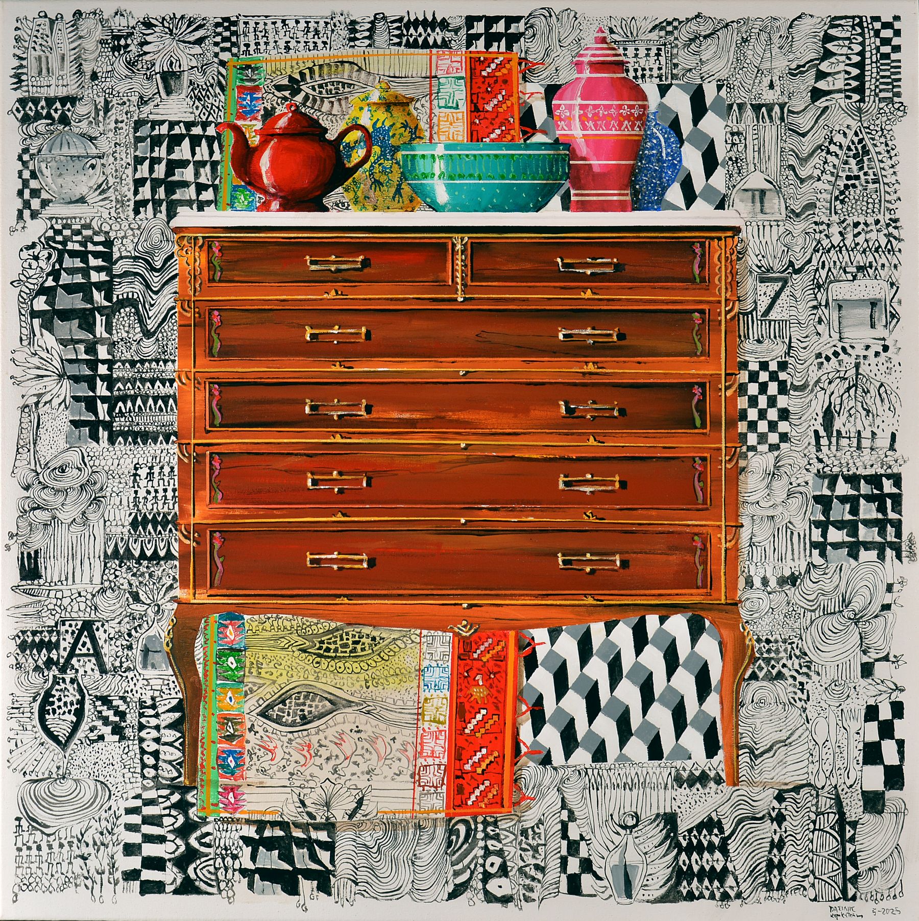 Η παρουσία αρχιτεκτονικών μορφών, κυρίως κατοικιών, παραπέμπει σε παλαιότερα έργα, όπου οι δομές αυτές γίνονται αναπαραστάσεις του σπιτιού, της οικογένειας και της διάβασης του χρόνου.