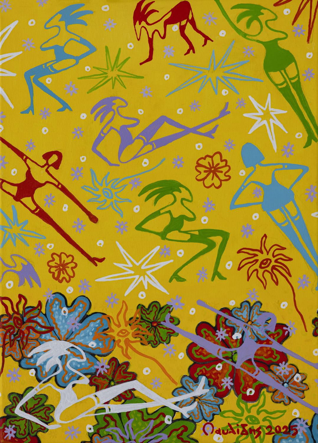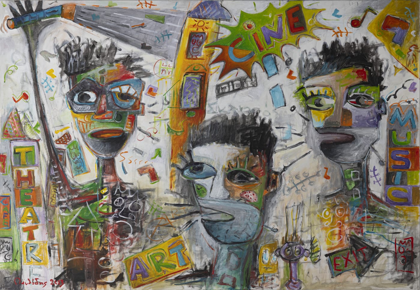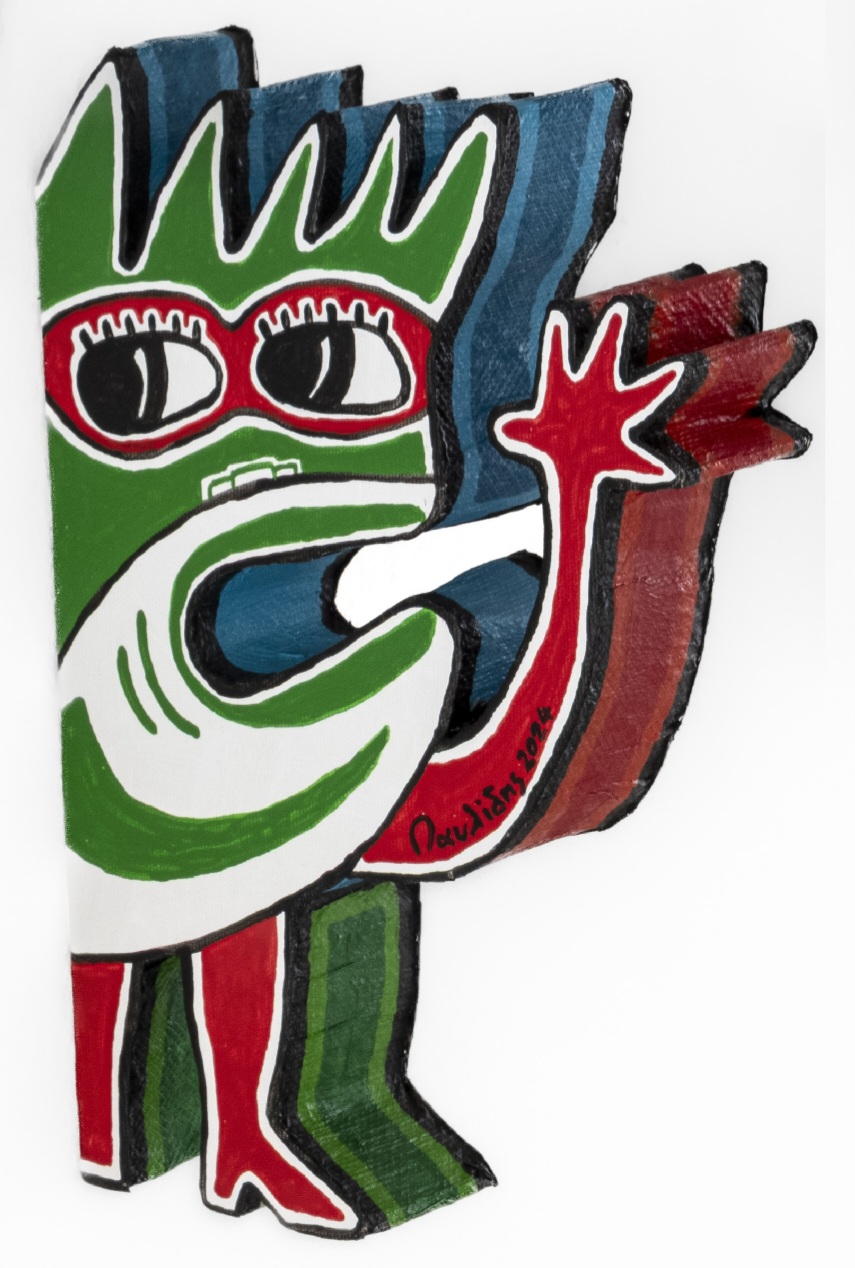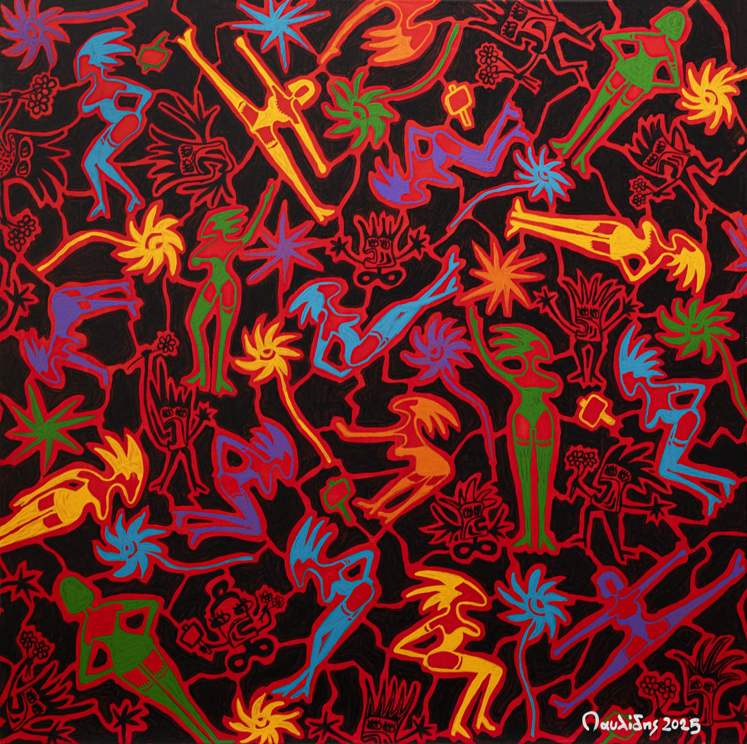 Με εκλεκτικές αναφορές σε αγαπημένους καλλιτέχνες όπως οι Jean Dubuffet, Pierre Alechinsky και William Burroughs που όργωσαν, ενεργοποίησαν και σωματοποίησαν τη γραφή ως σινιάλο και μέσο στη ζωγραφική πράξη και, βεβαίως, με διαχρονική αναφορά στον επιστήθιο Keith Haring, στο έργο του οποίου οι γραφισμοί με τα έντονα περιγράμματα και οι εμβληματικές ενεργητικές γραμμικές φιγούρες εστιάζουν με αντίστοιχο χιούμορ και εκφραστική οικονομία γραμμής σε σύνθετα κοινωνικά θέματα (καπιταλισμός, ανισότητα, ρατσισμός, πόλεμος, βία, εξάρτηση, καταχρήσεις), συμβολίζοντας την αναζήτηση της χαράς και την αντίσταση στην αδικία, ο Γιάννης Παυλίδης διατυπώνει με επίμονη καθαρότητα τον δικό του τρόπο αντίστασης. Και μαζί, τη διακαή πρόθεση επικοινωνίας, συμπλέκοντας και ενεργοποιώντας τους συμβολικούς ετούτους μαγικούς αστερισμούς του που δεν έχουν ποτέ διακοσμητικό χαρακτήρα. Περισσότερο από ο,τιδήποτε άλλο, τα οικεία στοιχεία που συνθέτουν τη σημειωτική γλώσσα του, λειτουργούν ως ευαίσθητες και ετοιμοπόλεμες κεραίες της δικής τους εποχής.
